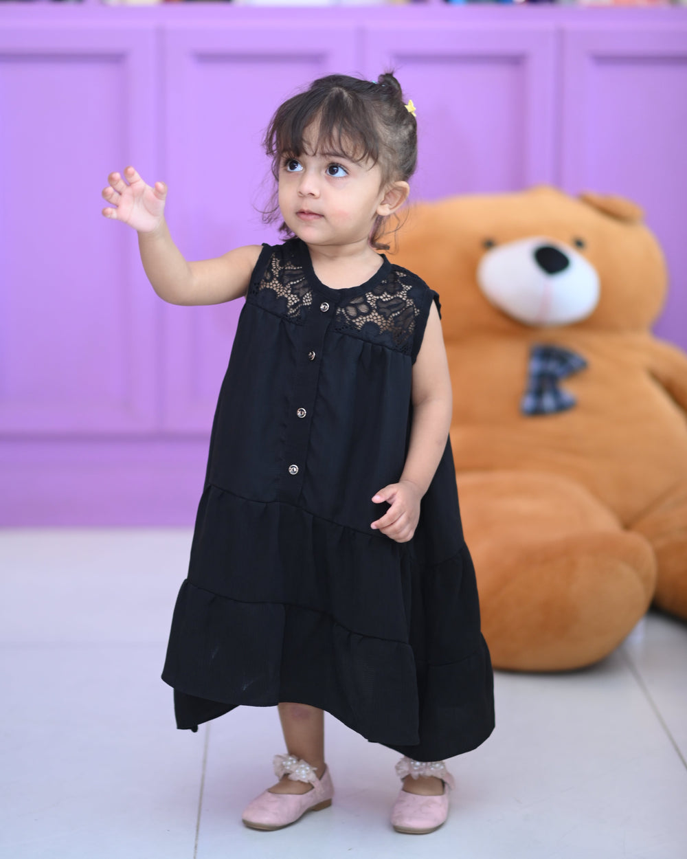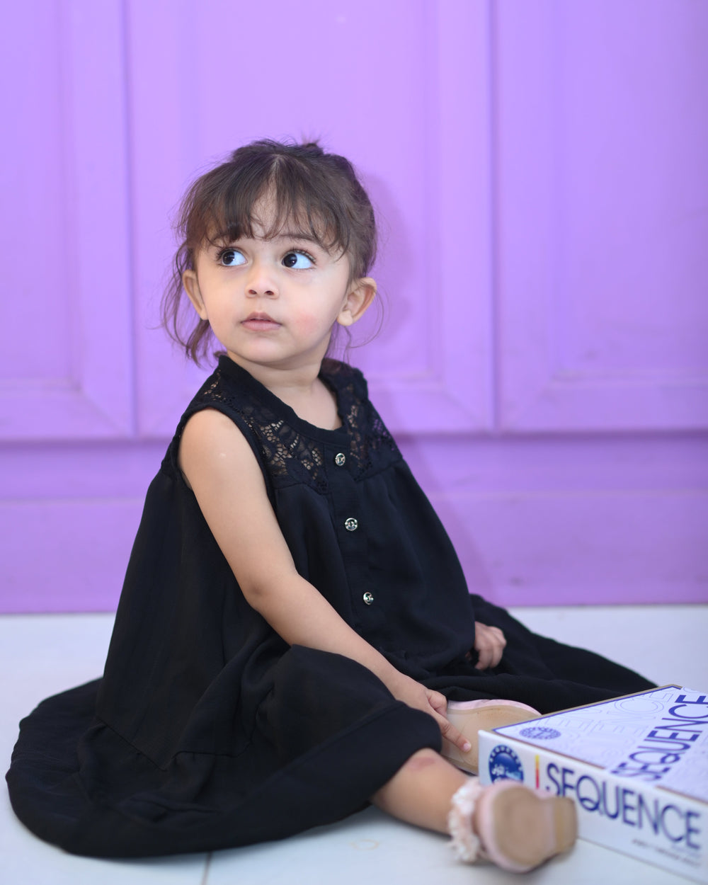 Crafted from luxurious silk chiffon graced with Chantelle net, this frock blends elegance with playful charm. The twirl-friendly design makes it perfect for little moments of joy, while the delicate details add a touch of sophistication. Ideal for parties, festive gatherings, or dressing up everyday style