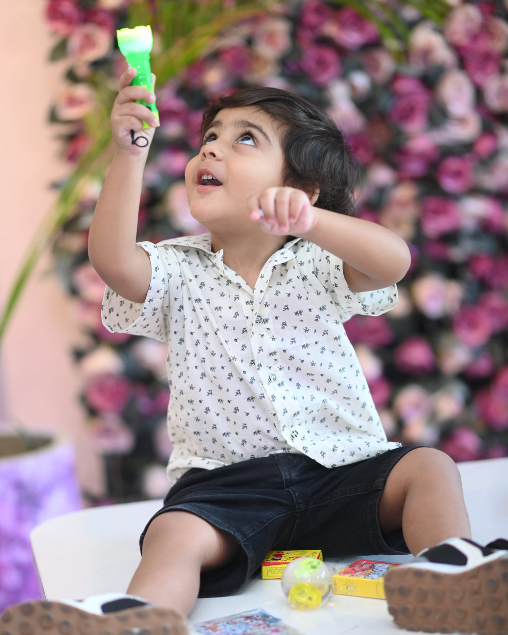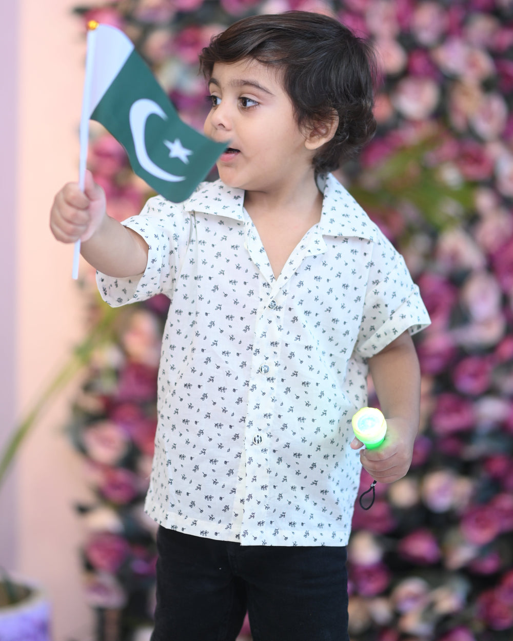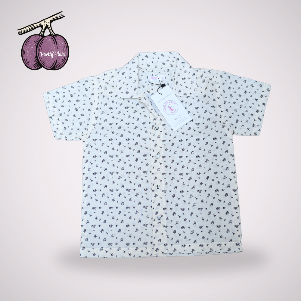 Fresh and stylish, this boys’ shirt features a breezy Cuban-style collar that adds a relaxed charm to the look. The falling petals print on crisp white fabric gives it a playful, nature-inspired touch. Soft, breathable, and lightweight—perfect for casual outings, festive gatherings, or everyday cool style.