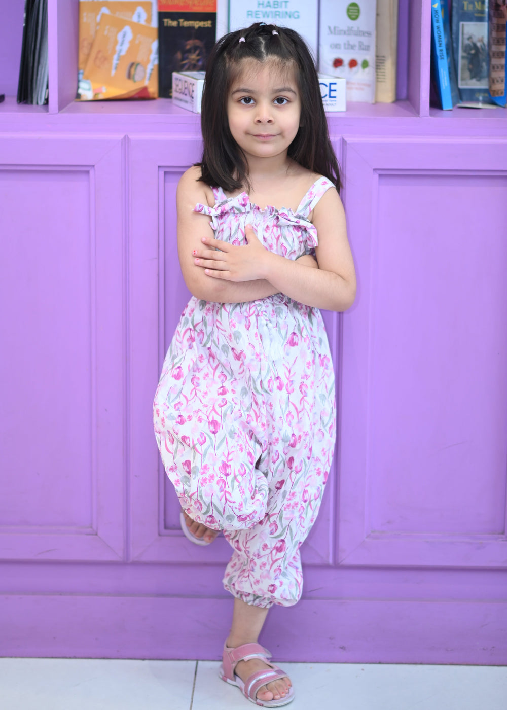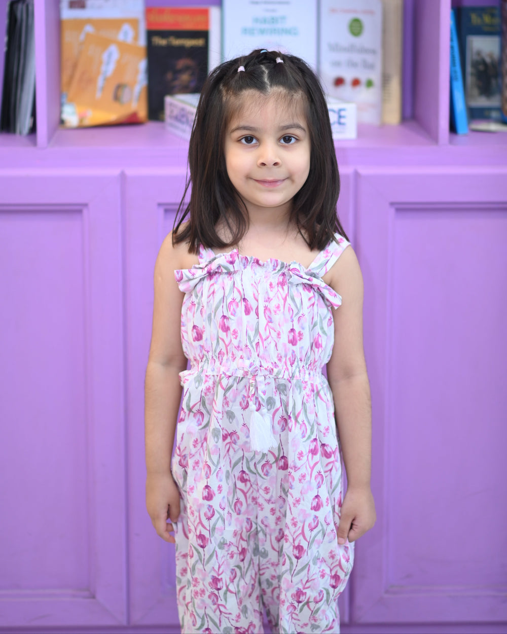 A statement piece for your little trendsetter, this jumpsuit blends playful style with chic sophistication. The smokey bow knot detail adds a touch of charm, while the vibrant fuchsia pink makes it perfect for parties, festive occasions, or stylish everyday wear.