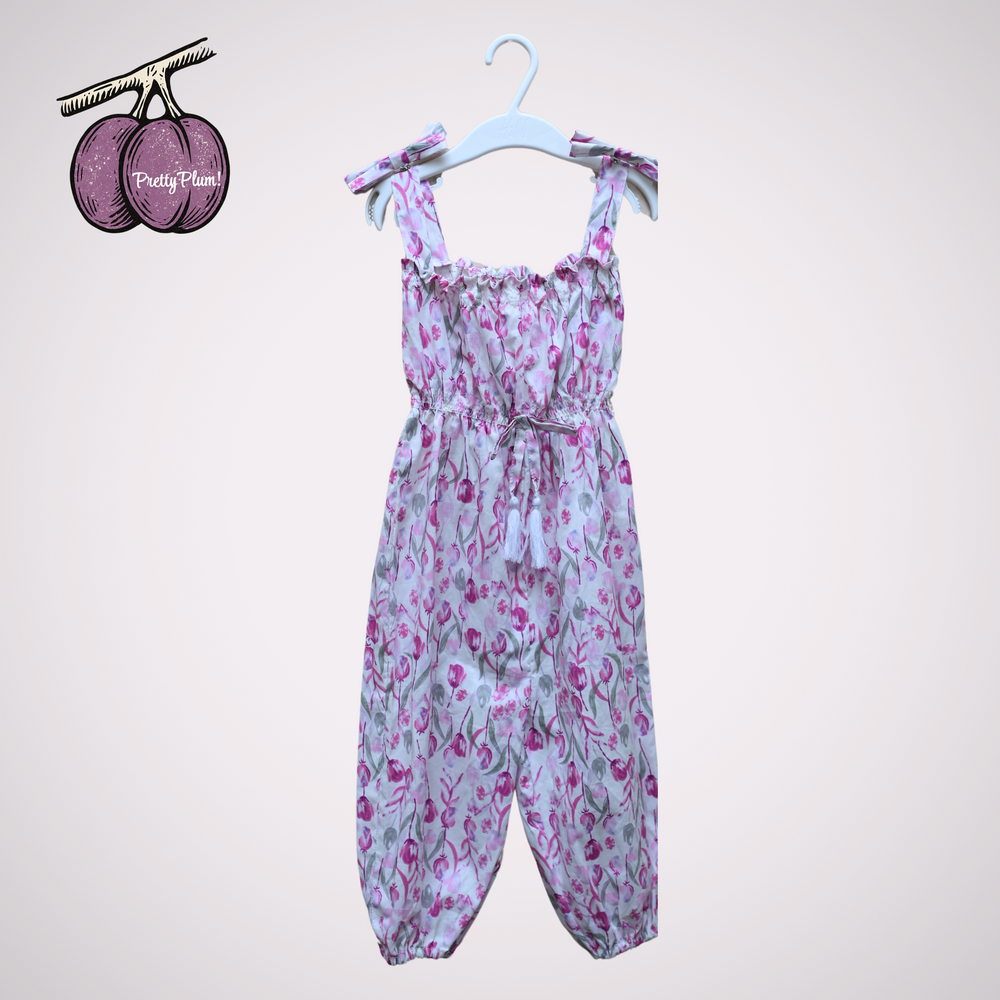 Girls’ Fuchsia Pink Jumpsuit – Smokey Bow Elegance ✨
