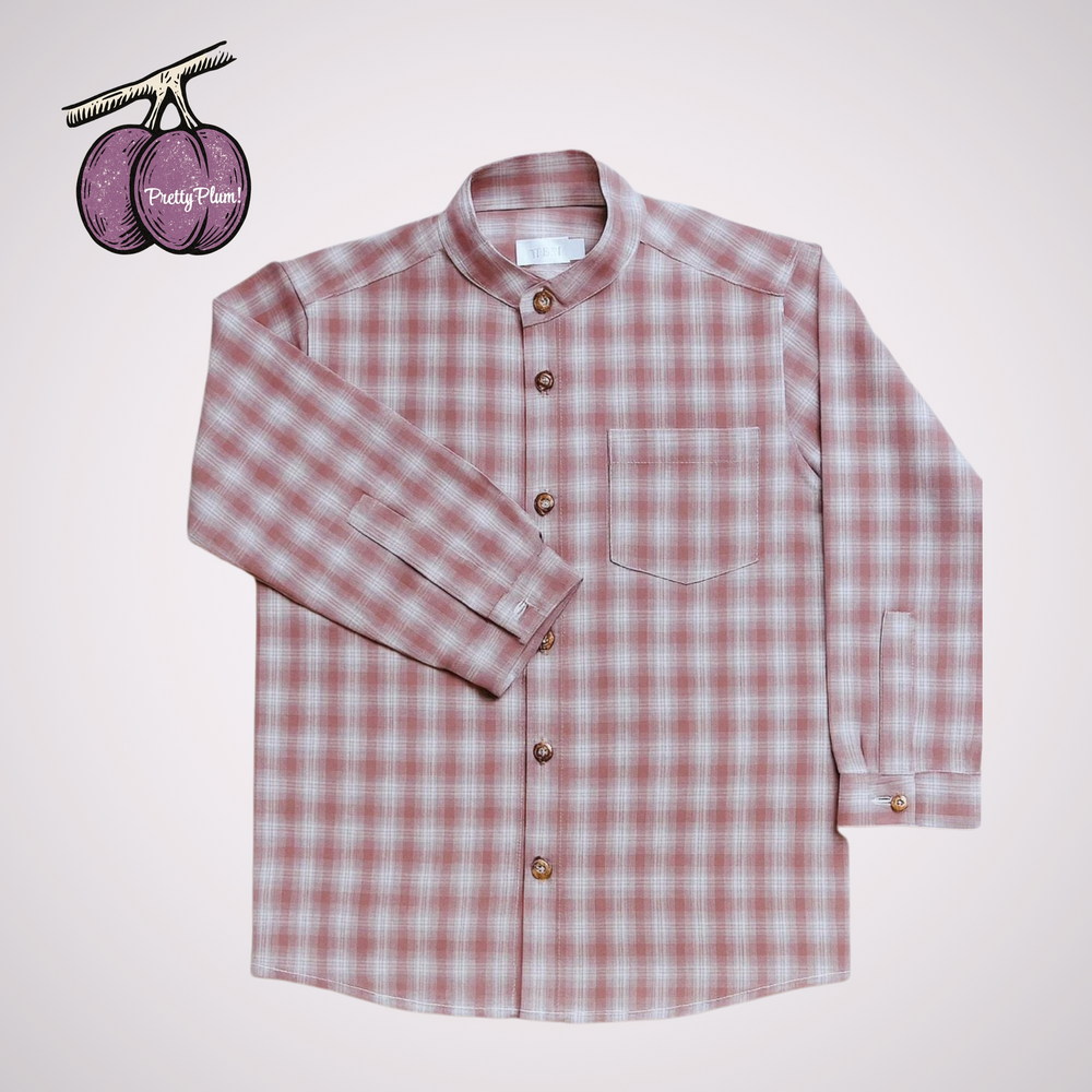 Boys’ Checkered Ban Collar Shirt – checks for cool days ✨