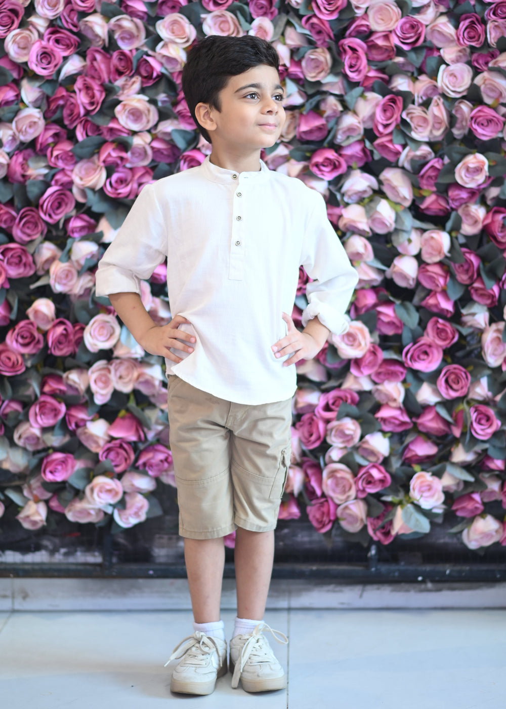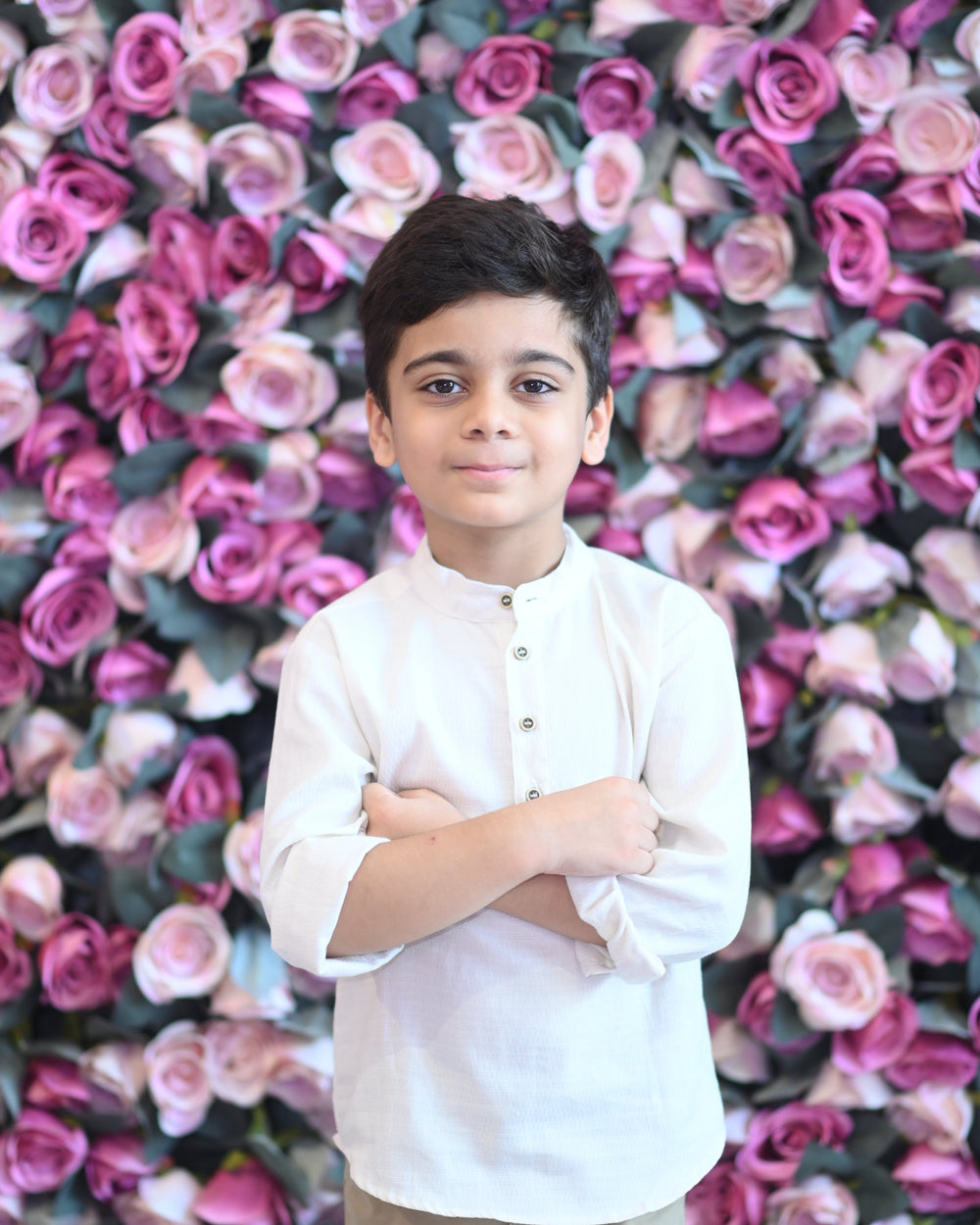 Crafted from premium jacquard fabric, this kurta brings effortless elegance to your little one’s wardrobe. The kurta-style stitching with buttoned detailing makes it both traditional and trendy, while the classic neutral color ensures timeless versatility. Perfect for festive gatherings, family outings, or casual wear.